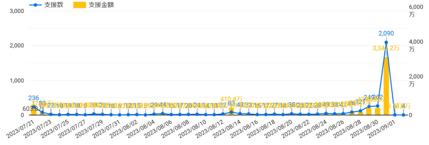 ※9月1日と2日の支援金額は、コンビニ振込等による入金による