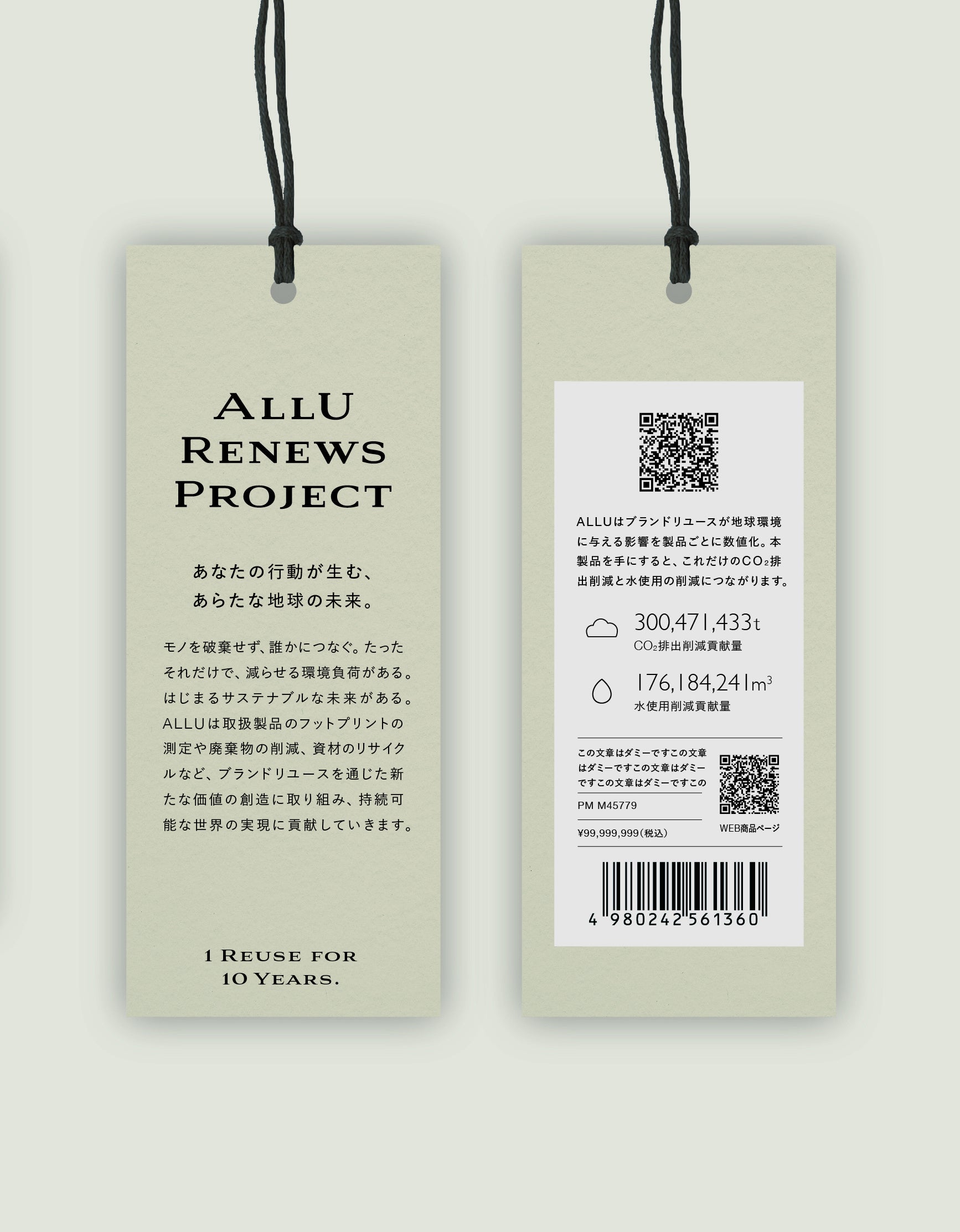 自分がそれまで大切にしていたアイテムを他の人に譲り渡すことも、大切にしていることに繋がるという日本では珍しい文化に触れ、良い連鎖が環境問題の解決に繋がり、究極のサステナブルとしてライフスタイルの一部になれば良いなと考えていた矢先にALLUと出会いました。