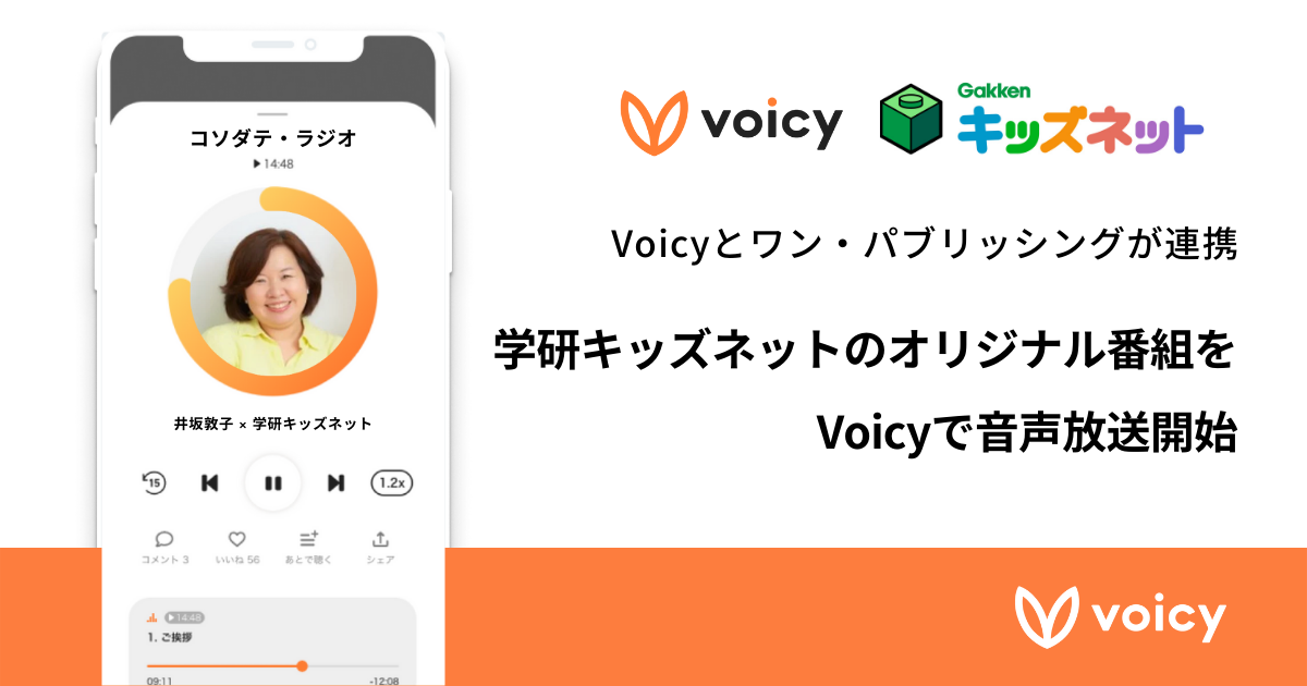Voicyとワン・パブリッシングが連携。学研キッズネットのオリジナル番組をVoicyで音声放送開始。