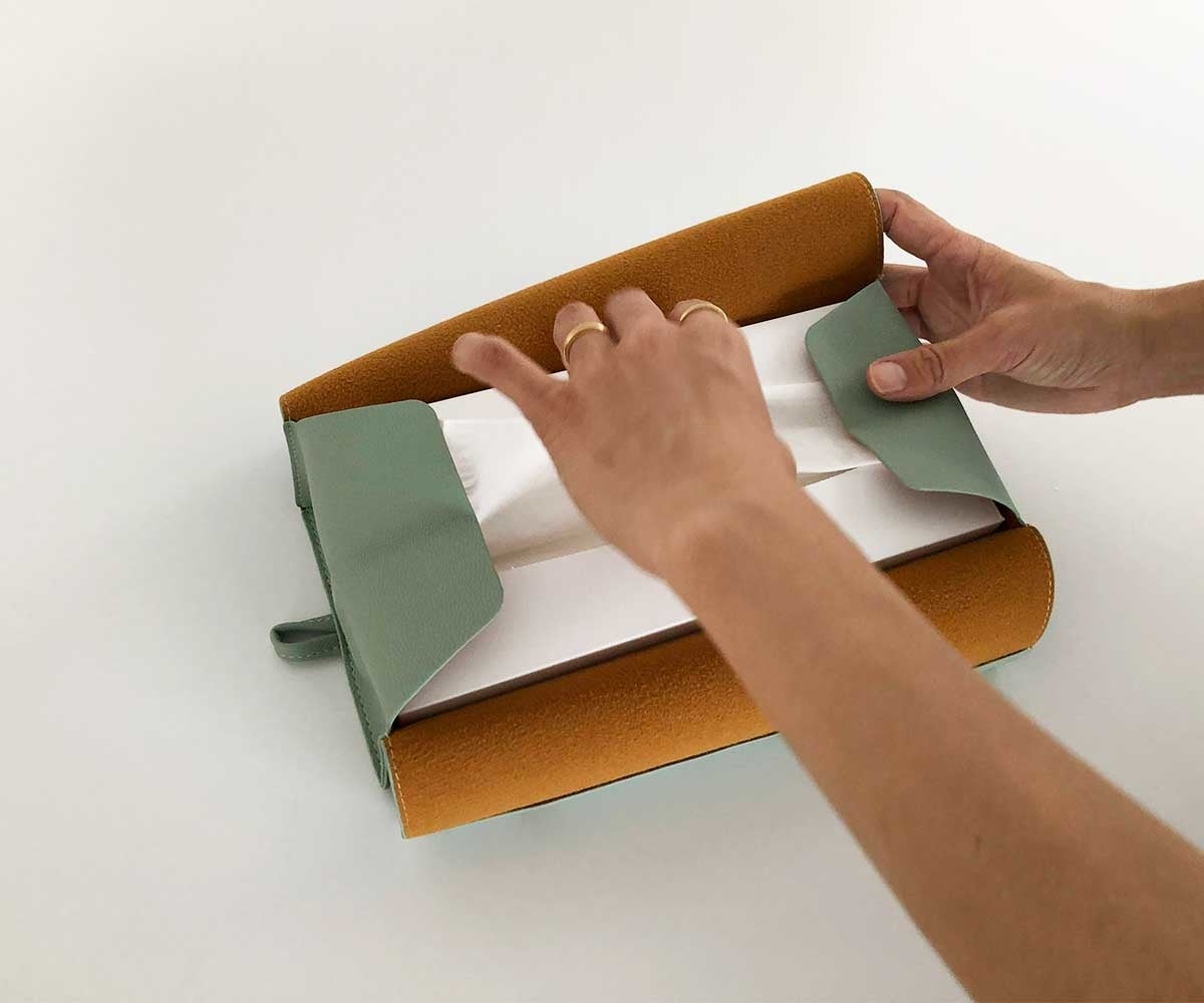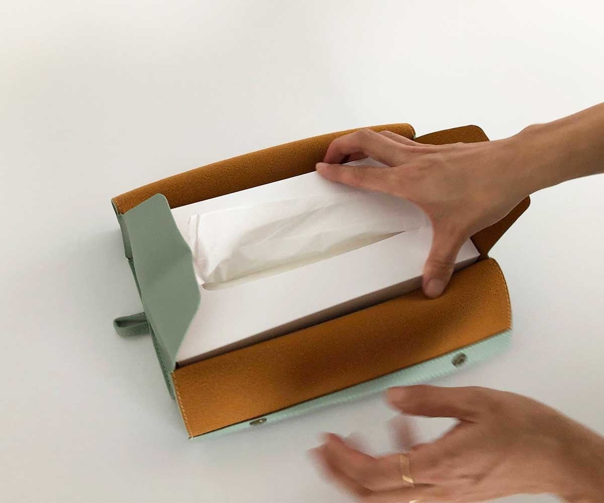 どこの家庭にも必要な「ティシューペーパーボックス」を、その人やその部屋のインテリアに合うようなデザインで覆ってしまいましょう、という発想から「tente」が誕生しました。