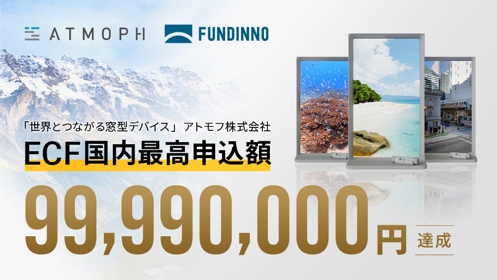 株式会社FUNDINNO(本社:東京都港区、代表:柴原 祐喜/大浦 学 以下「当社」)は、アトモフ株式会社(本社:京都府京都市、代表:姜 京日 以下「アトモフ」)が、株式投資型クラウドファンディングサービス「FUNDINNO(以下、ファンディーノ)」を通じて、上限応募額9,999万円を達成したことをお知らせします。