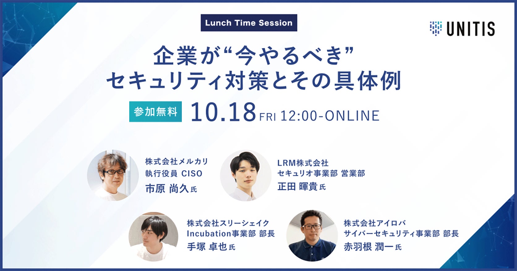 「Lunch Time Session 〜企業が“今やるべき”セキュリティ対策とその具体例〜」公式サイト:https://unitis.jp/seminars/13456/