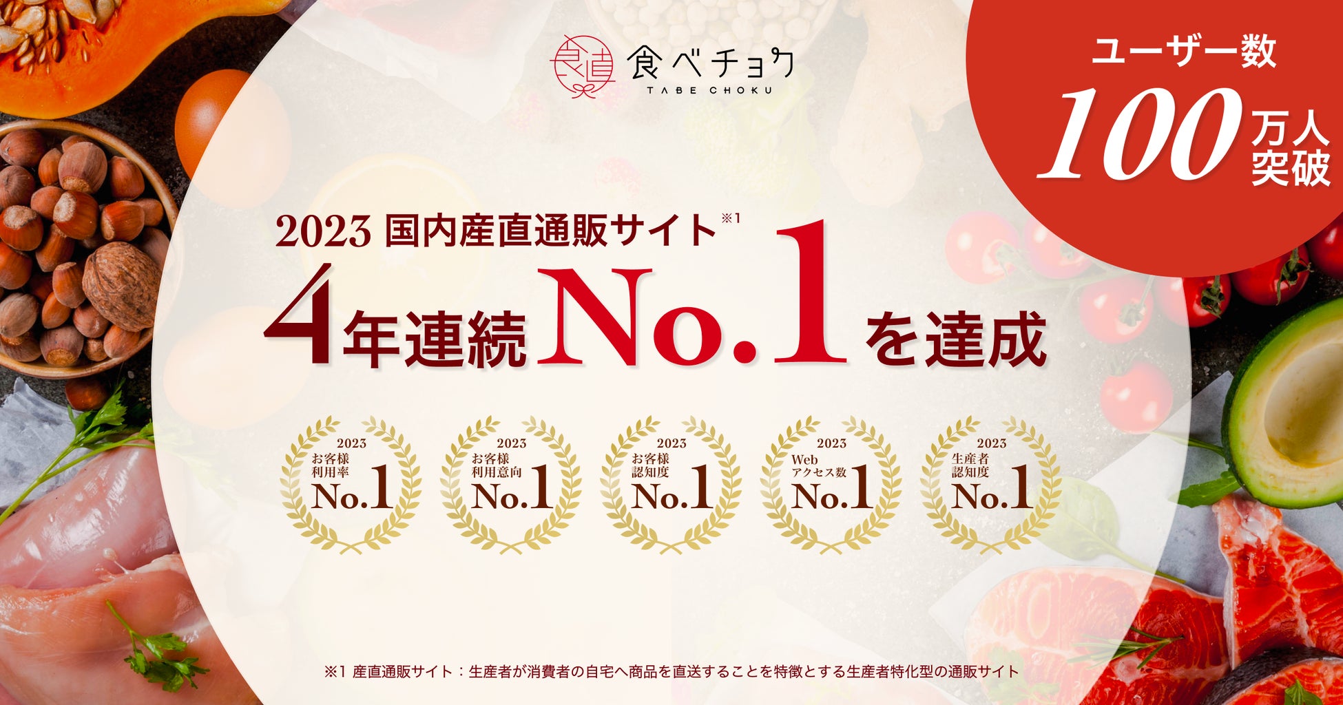 ⾷べチョクは、こだわり⽣産者から直接⾷材や花きを購⼊できる産直通販サイトです。日本の産直通販サイトの中で認知度や利用率などの9つのNo.1(※1)を獲得しています。