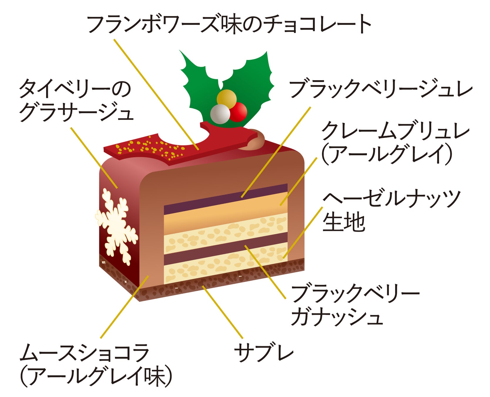 コクのあるショコラに、ブラックベリーの酸味とアールグレイの香りを合わせ、上品で大人好みの味わいに仕上げました。