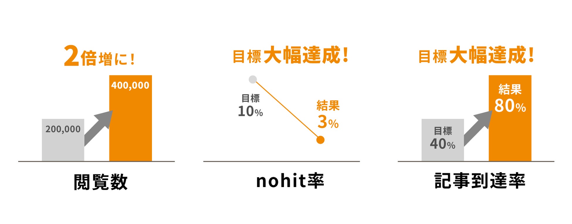 「Helpfeel」の導入後の効果 ー 記事閲覧数、記事到達率、nohit率はいずれも目標を大きく上回った