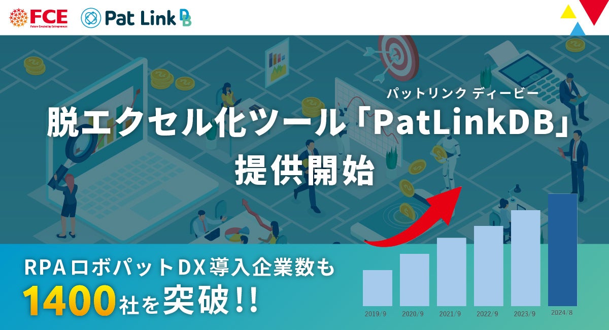 株式会社FCE(東京都新宿区、代表取締役社長:石川淳悦、東証:9564)は、「RPA Robo-Pat DX(以下、RPA ロボパットDX)」に続く生産性向上ツールとして、多くの中小企業が抱えるエクセル業務の非効率性・属人化という課題を解決するため、脱エクセル化ツール「Pat Link DB(パットリンクディービー)※DB=データベース」の提供を開始しました。