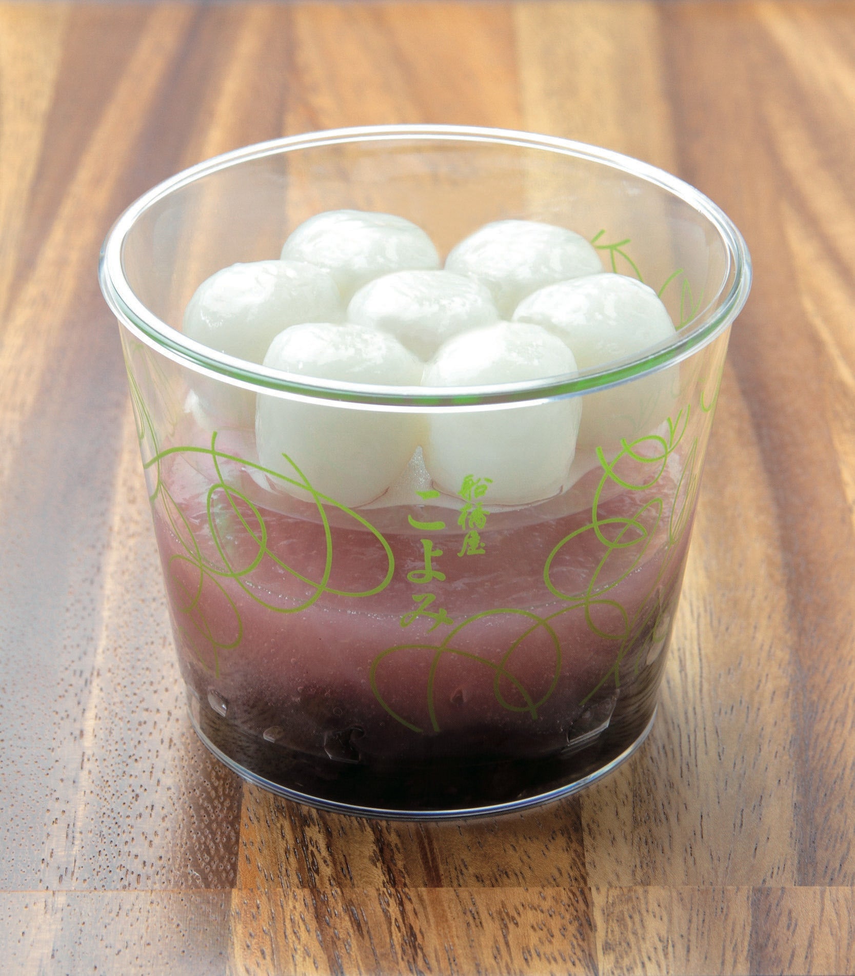 職人が毎日手間ひまかけてお作りしている小豆と、爽やかな甘さの白桃ピューレの二層になったおしるこです。小豆と白桃ピューレを混ぜることで、まろやかな味わいが口いっぱいに広がります。