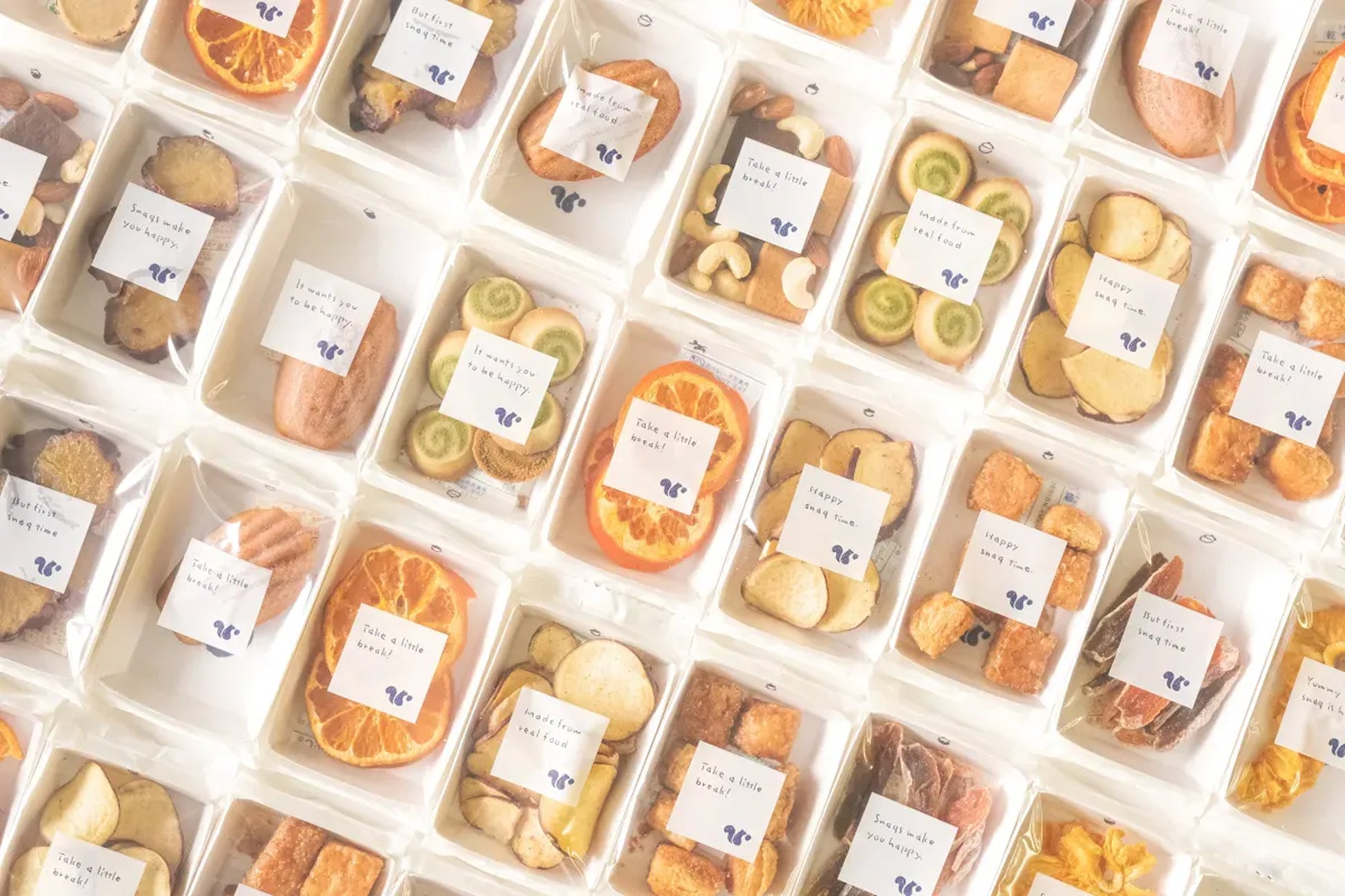 常時100種類以上取り揃えている豊富なラインナップから、おすすめのおやつを皆さまにお届けします。
