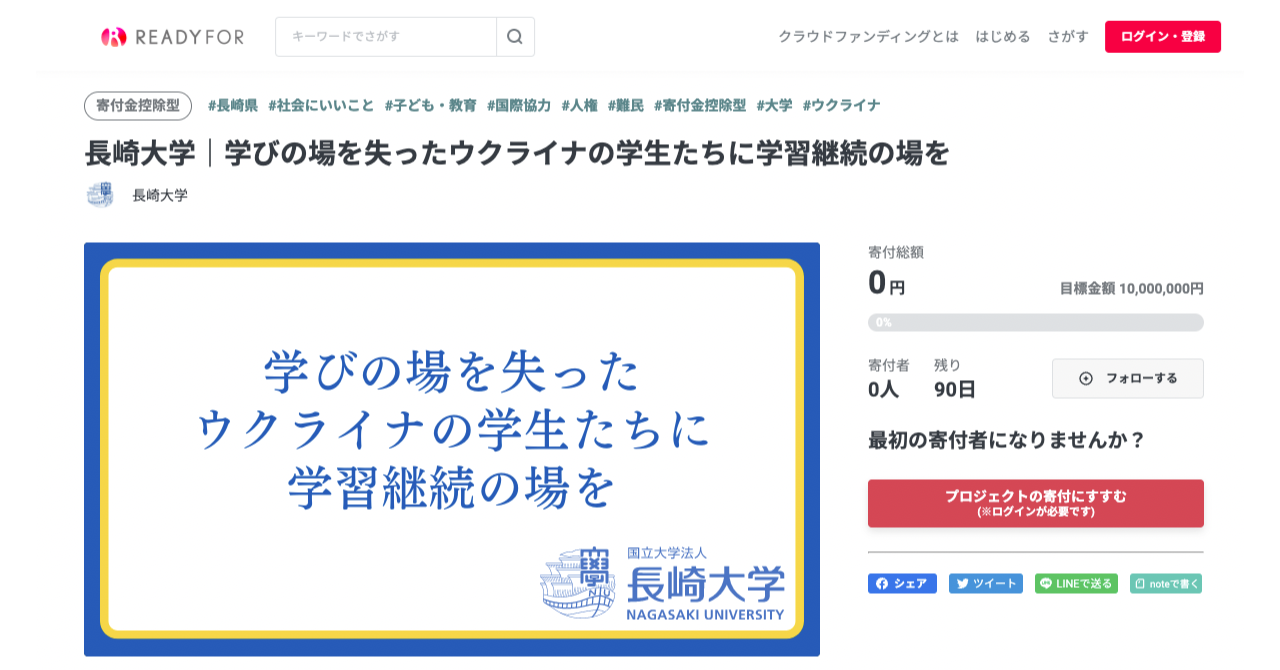(プロジェクトページURL:https://readyfor.jp/projects/nagasakiuniversity-ukraine)