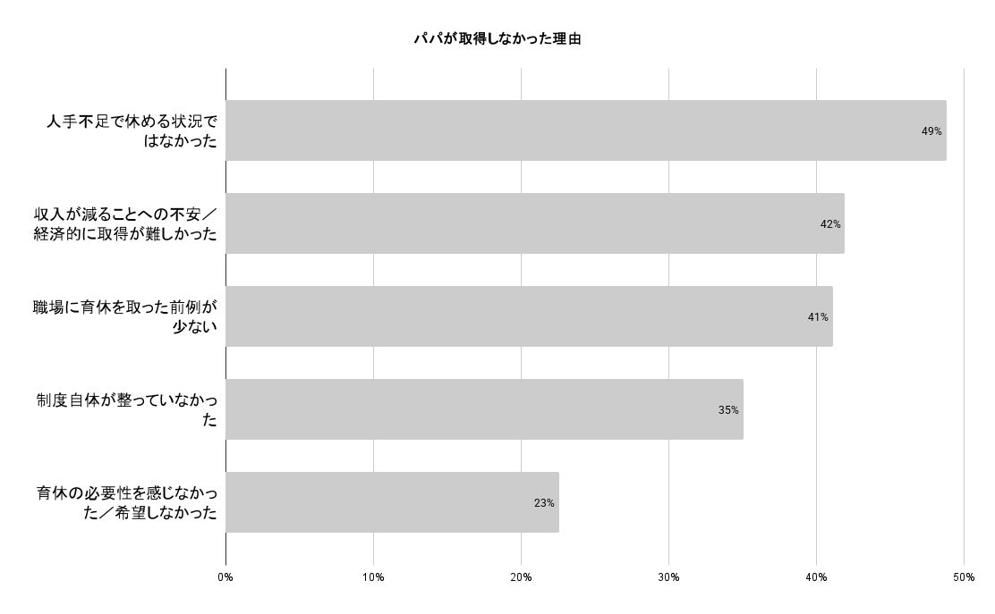 パパが育休を取得できなかった理由、最多は「人手不足で休める状況ではなかった」49%