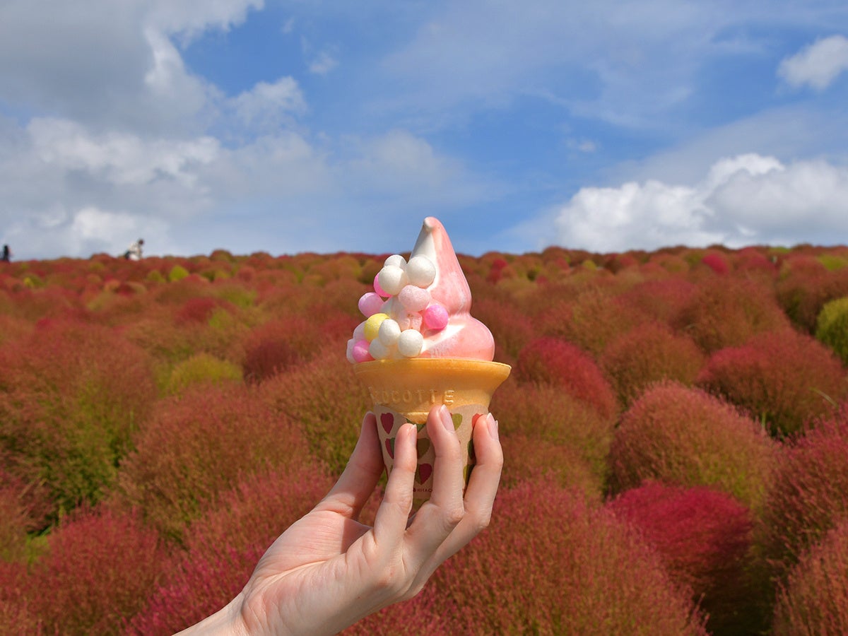 期間中は、地元の食材を使ったお食事からスイーツまで、茨城県のご当地フードが目白押しです。ひたち海浜公園名物の「ハム焼」や「コキアカレー」などのお食事メニューから、秋の定番スイーツ「まるころコキアソフト」をはじめ、茨城県産の果物とヨーグルトを使用した「いばらき果実の濃厚ラッシー」や「コキアラテ」など、スイーツメニューも充実しています。