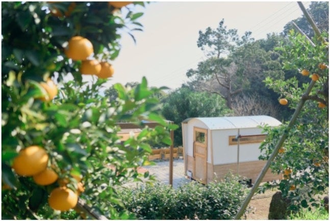 ➂滞在:タイニーハウス、アウトテリアデッキを使用した相模湾を見下ろすプライベートみかん農園での滞在