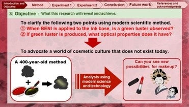 研究タイトル:Analyzing a 400-year-old mystery: producing green makeup from ink and Beni
