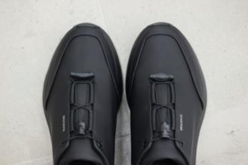 サイドはランニングシューズ、フロントは革靴、一足で様々な側面を併せ持つ。