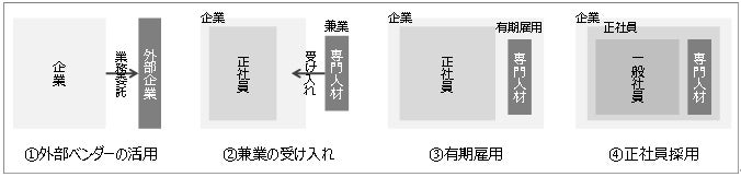 専門人材の活用スキームは必ずしも正社員での採用に限らず、複数の選択肢から自社にとって最適なスキームを採用する必要があります