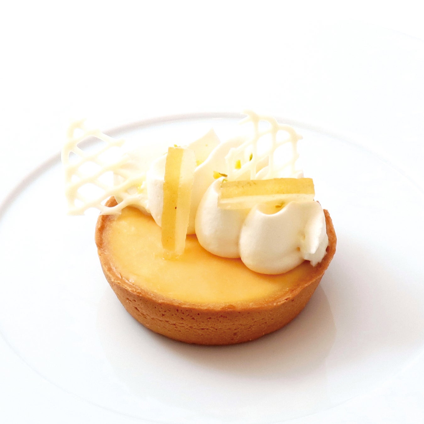 さっくりとしたタルト生地にレモンクリーム、 チーズ風味のクリームを絞った、 爽やかな味わいのレモンタルト。