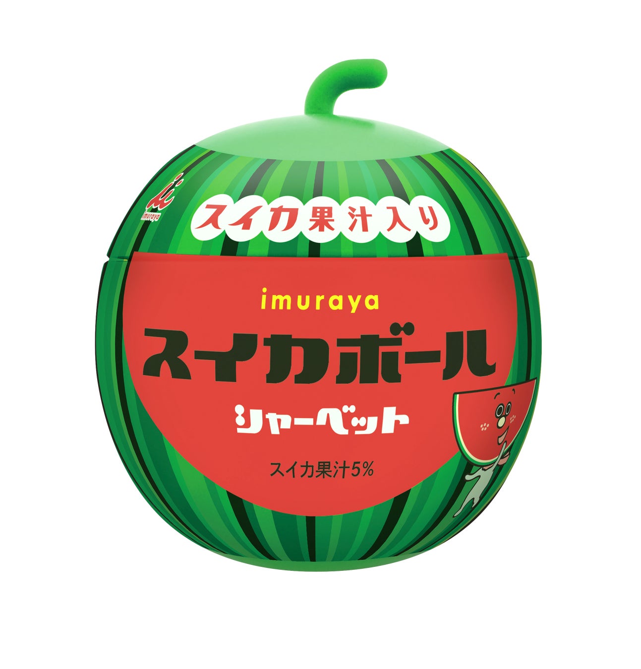 スイカ型の容器に入った、爽やかな甘さのシャーベットアイス。