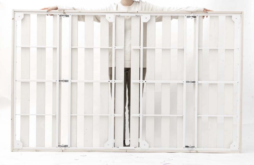 【タンスのゲン】家具の組み立てが面倒な方に朗報!すぐに使えるすのこがベッド登場!すのこベッドを四つ折りに折りたたむタンスのゲンオリジナルのギミックで、移動や設置を簡単に