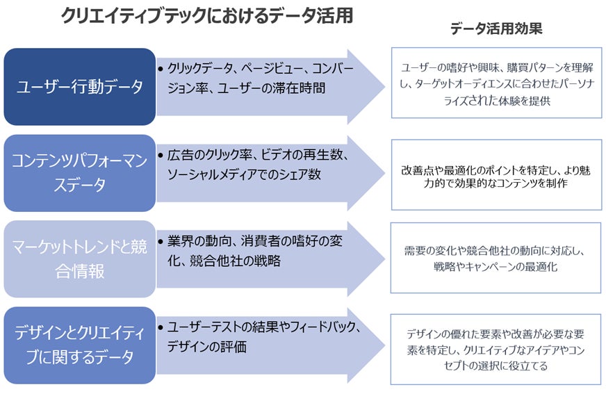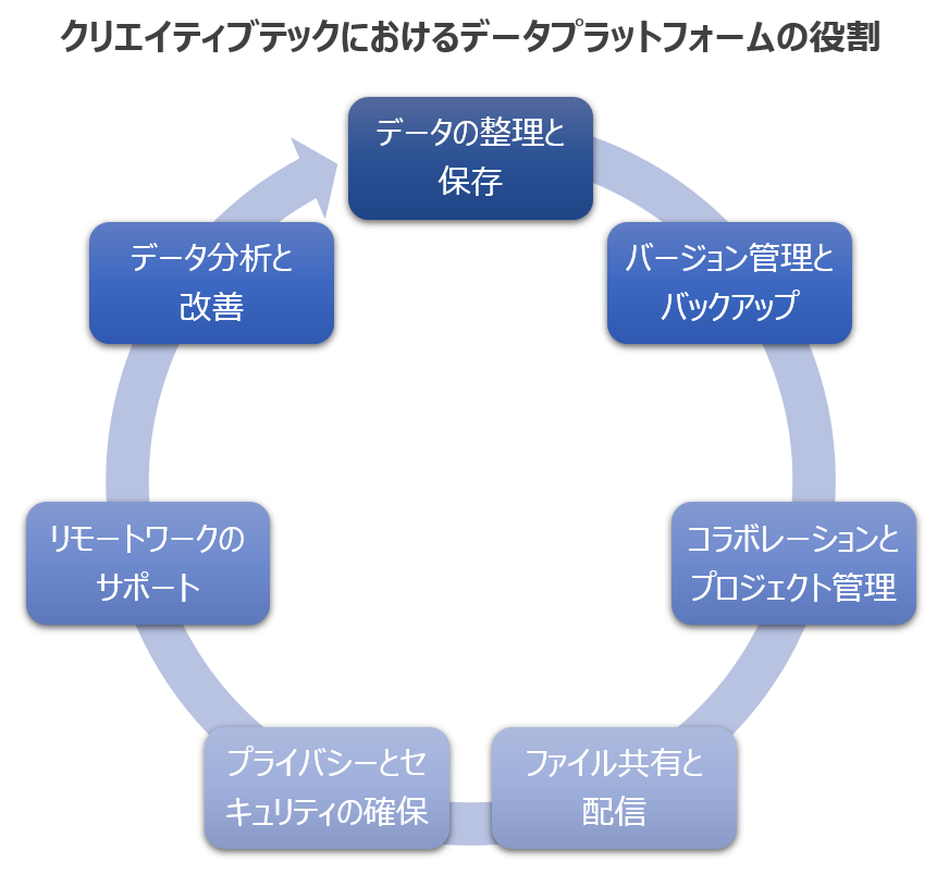 データをデータプラットフォームに蓄積し、データ分析やAI技術を活用することで、クリエイティブ業界における、効率化、パフォーマンス向上につながることが期待されています。