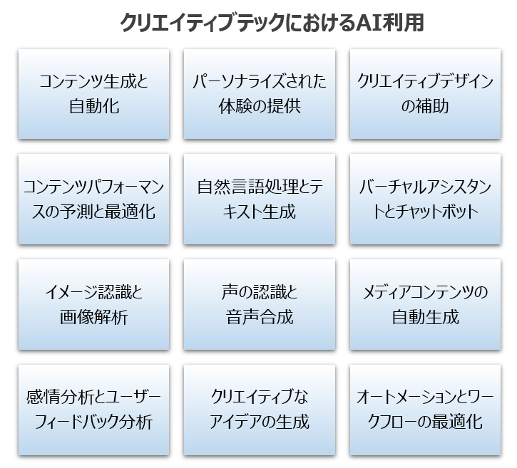 Creative Tech(クリエイティブテック)とは、Creative(クリエイティブ)とTechnology(技術)を組み合わせた言葉で、クリエイティブな表現と最新の技術を組み合わせた領域を指します。クリエイターが優れたアイデアやデザインを創作するために、デジタルテクノロジーやデジタルツールを活用することを特徴としています。クリエイティブテックは、広告、マーケティング、エンターテイメント、デザイン、アートなど、さまざまな産業や分野において重要な役割を果たしています。