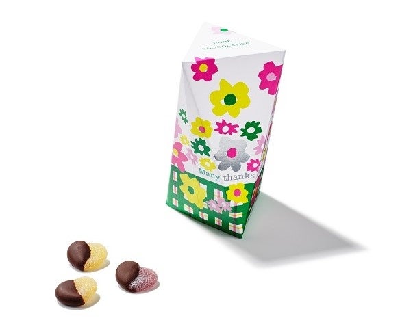 フラワーブーケのモチーフが描かれたパッケージは、贈り物にもぴったり。