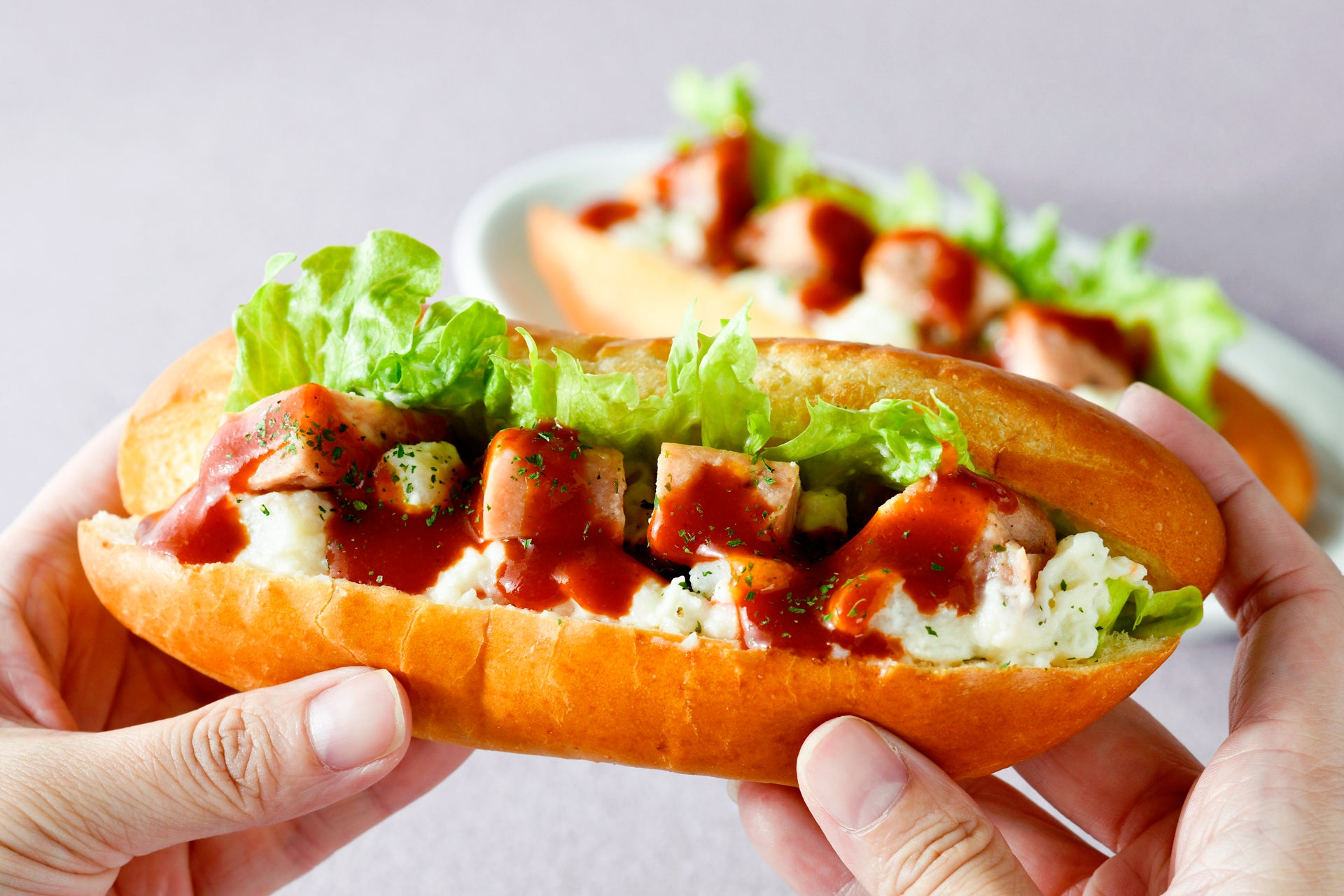 さわやかな酸味とほのかな辛みが広がる、カリー風味のケチャップを使用しました。旨みのあるポークとポテトサラダと合わせることで、しっかりとした満足感を楽しめるサンドイッチに仕上げました。ランチにも、小腹を満たす一品としてもおすすめです。