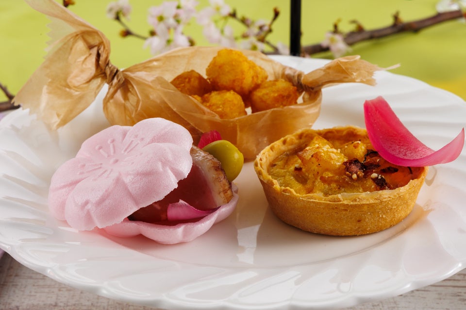 また、ほのかに優しい桜の薫りが漂う“スコーン”や、桜の最中と一緒にお楽しみいただける大阪産「河内鴨」の鮮度の良さと脂の旨味を活かした“生ハム”。桜のテイストと筍の食感が絶妙の“キッシュ”など、シェフこだわりのセイボリーもご堪能いただけます。