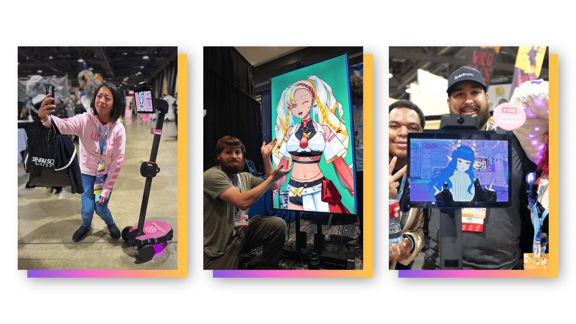 参加者は、推しが滞在する移動式モニターと一緒にイベント会場内を探索したり、その場での交流を楽しむことができます。モニター型ロボットによる推しとファンとの交流は、これまでになかったコミュニケーションを実現します。