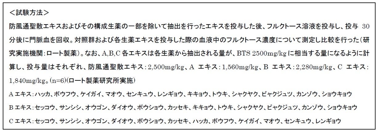 ①防風通聖散にフルクトースの吸収を抑制する作用があることが示唆された