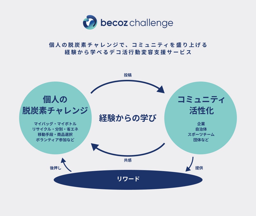 企業や自治体のCO₂削減において、従業員や住民という個人の環境意識向上・行動変容は重要です。しかし個人のCO₂排出量や削減量の把握はデータ取得は非常に困難で、担当者が施策を企画するのは難しいという課題があります。自治体や団体への導入実績をもつ「becoz challenge」は、企業の脱炭素施策にも活用しやすくすることを目的に機能を拡充しました。