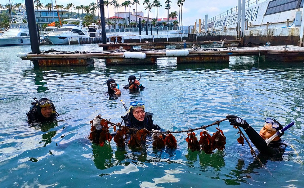 また、海からの視点で発信し、LOVE OCEANエリアを「環境の整った海の魅力あふれる”訪れたい” ”住みたい”まち」として確立し、国内およびインバウンドから注目を集め、ブルーツーリズムにも寄与していきたいと思っています。さらには、環境保全・地域振興・住民の満足の両立を目指すうえで、藻場再生による磯焼け問題の解決にも注力しており、ブルーカーボンベルト®の形成を目指しています。
