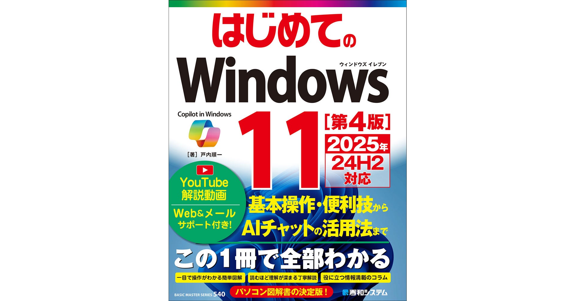 Windows11最新バージョン 「24H2」に完全対応。基本の操作方法から、AIチャット「Copilot」の活用方法、実は知らない人が多い便利技まで丁寧に解説します。