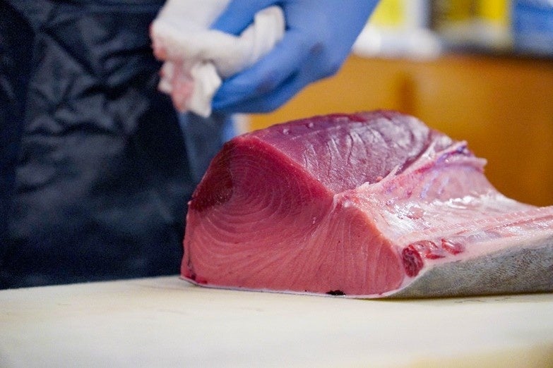 迫力満点! 40キロ超の国産本まぐろを解体する、職人の鮮やかな包丁捌きを間近で