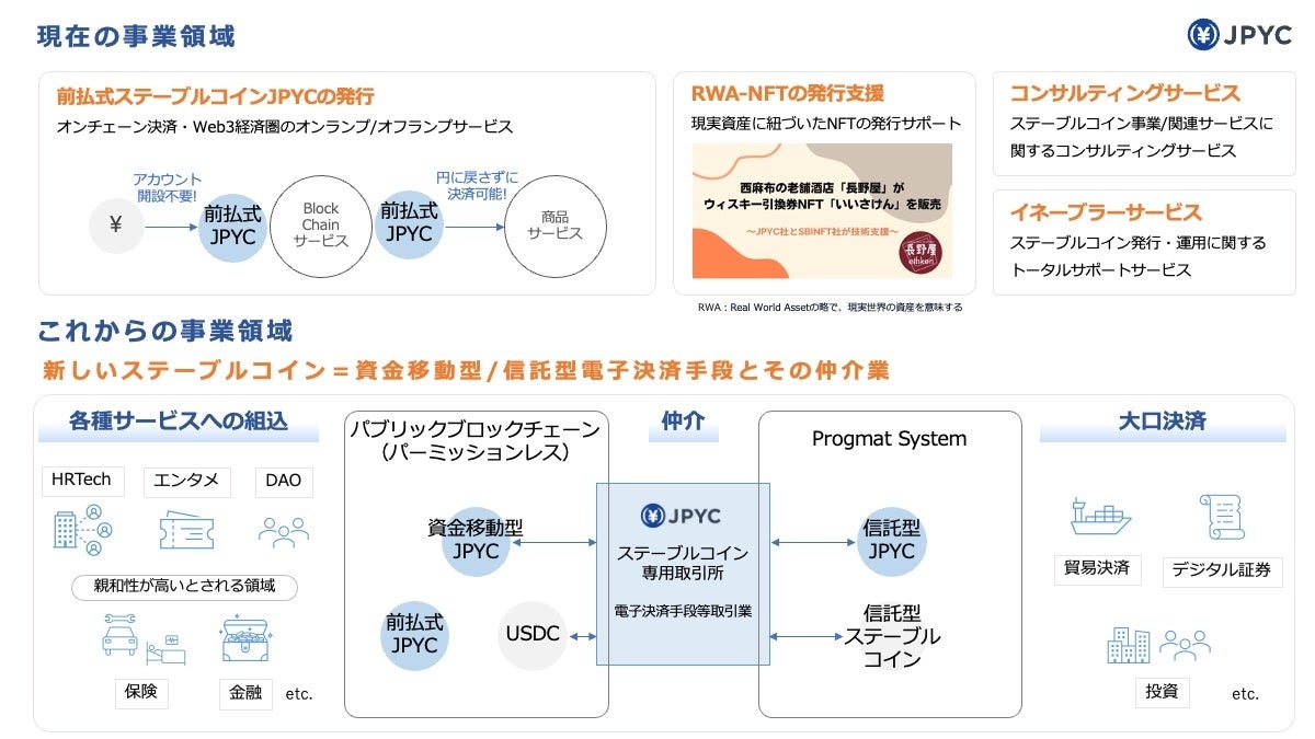 JPYC社は2023年11月に三菱UFJ信託銀行およびProgmatと提携を発表し、「Progmat Coin」基盤での「JPYC(信託型)」の発行を予定しています。