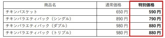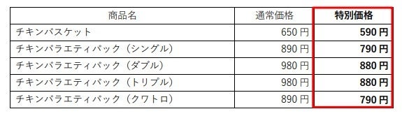 ※『チキンバラエティパック(クワトロ)』は、「ほっともっとグリル」のみ対象となります
