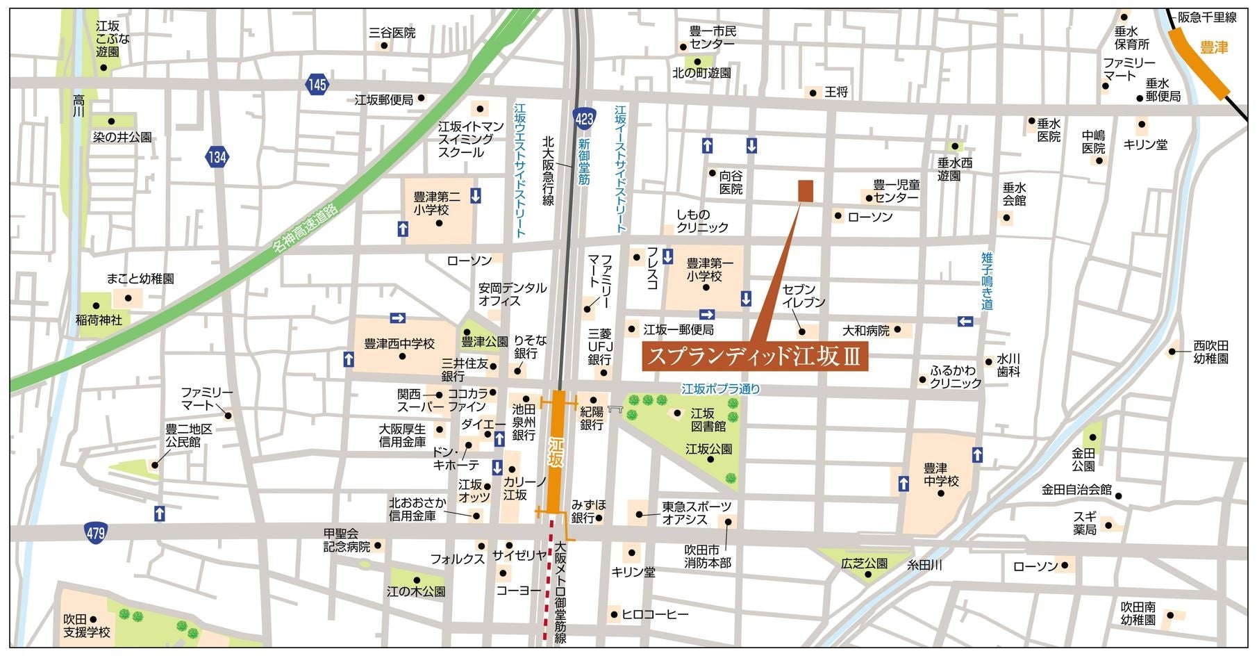 交通アクセス: 大阪メトロ御堂筋線「江坂」駅 徒歩約9分