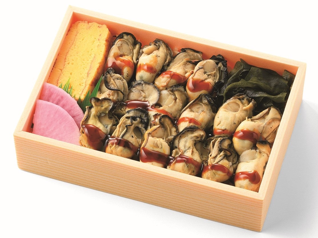 老舗調製元「まねき食品」の瀬戸内産の牡蠣を16粒どっさり盛り込んだ豪快な牡蠣めしです。牡蠣は、調味液に漬け込んでから旨みを閉じ込めるためにふっくらと蒸し焼きに。牡蠣の風味を存分に味わえるようオイスターソースで炊き込んだご飯の上に盛りつけた、牡蠣づくしの駅弁です。
