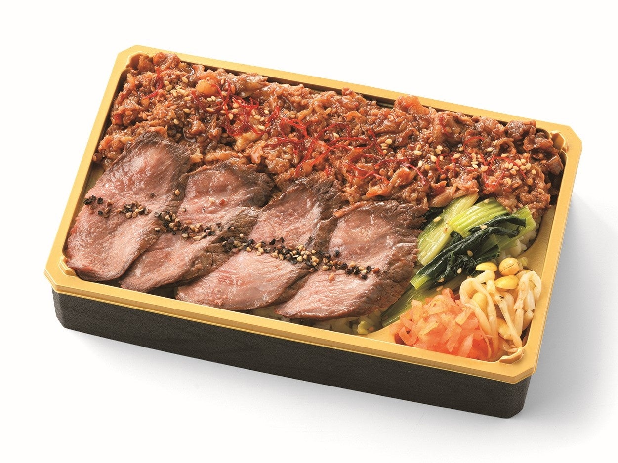 1922年創業の老舗調製元「松浦商店」。日本三大和牛の一つ「松阪牛」のすき焼き風煮と焼肉の食べ比べを楽しめる弁当が登場します。タマネギの甘さが際立つ甘辛ダレのすき煮とにんにくが効いた特製ダレの焼肉をのせた、ご飯が進む肉弁当です。