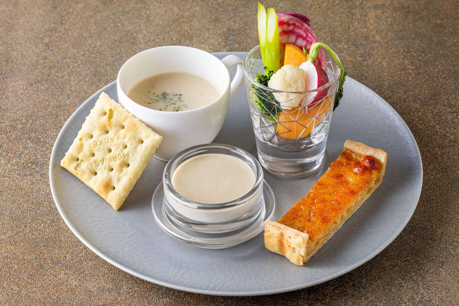 ・バーニャカウダ アンチョビソース・オニオングラタンのキッシュ・クラムチャウダー
