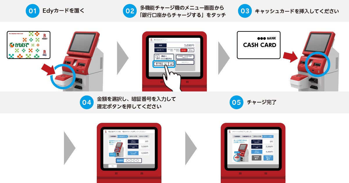 かねひでと楽天Edy、多機能チャージ機での銀行口座チャージ開始