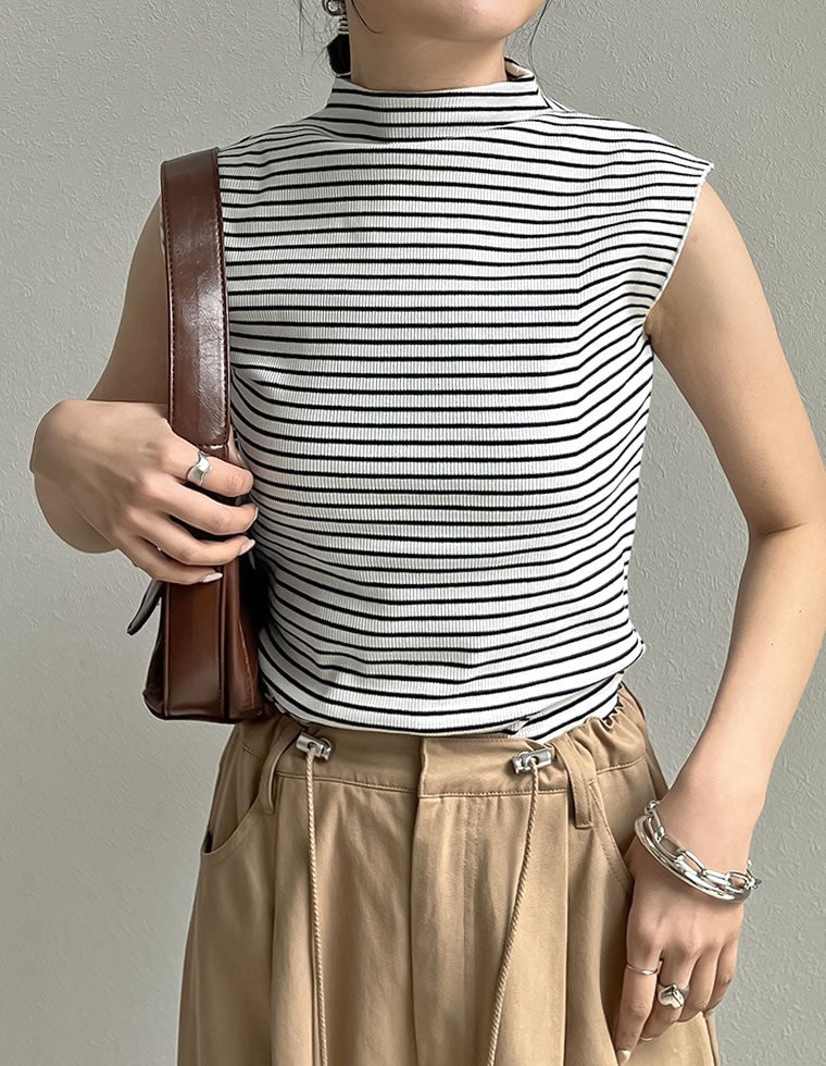 首元をすっきりと引き立てるボトルネックが、エレガントな印象を与えます。柔らかなリブ素材が体に程よくフィットし、快適な着心地も大事なポイント。普段使いはもちろん、ジャケットのインナーにも活躍し、オフィスカジュアルにも最適です。