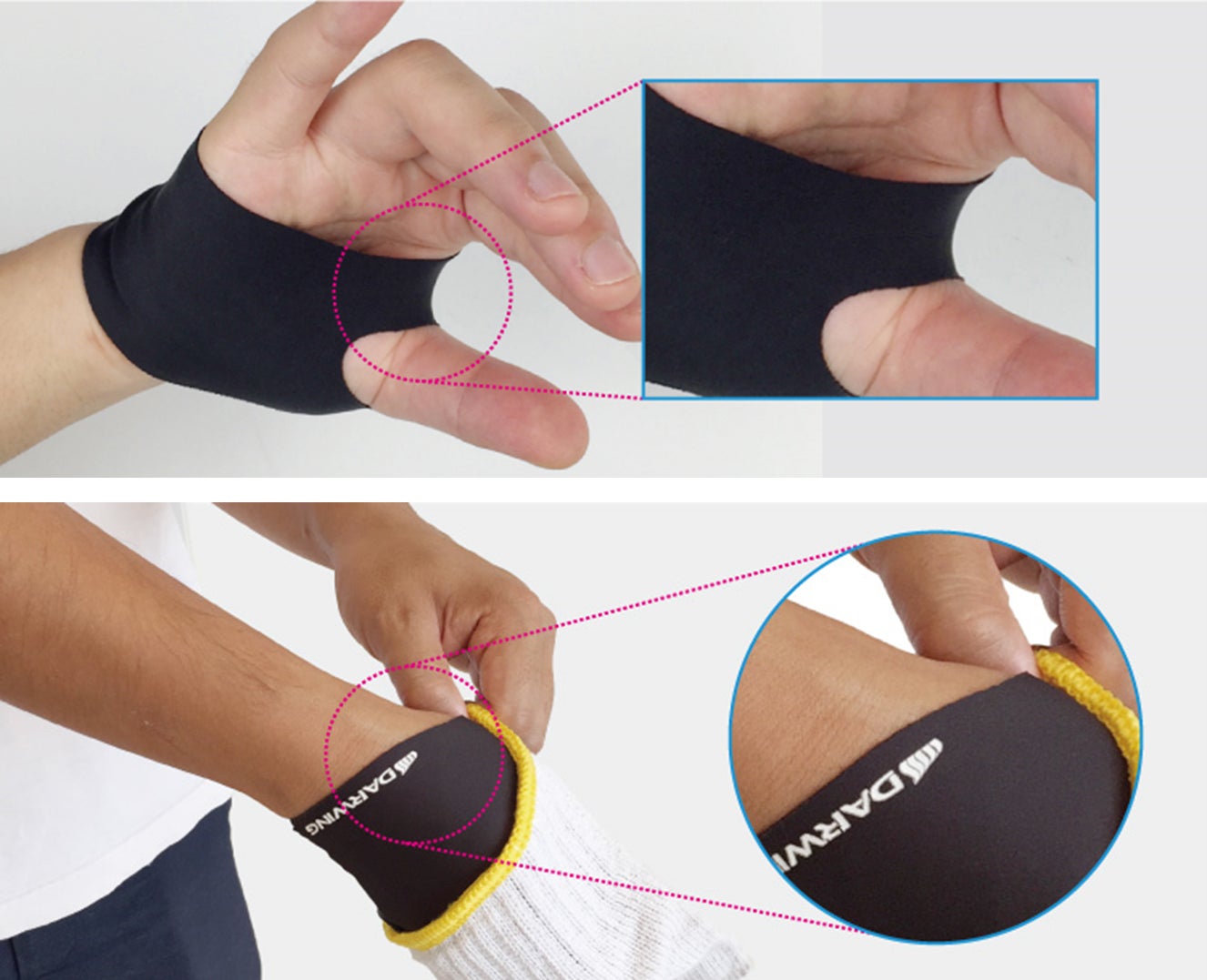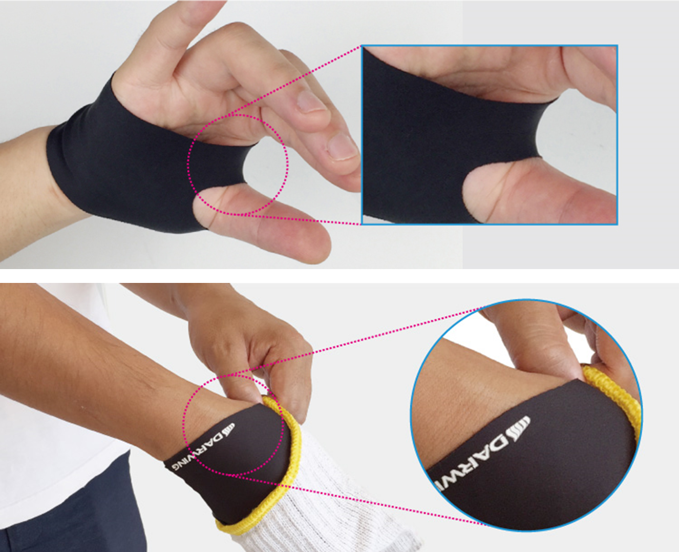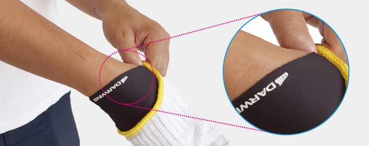 作業性を損なわず長時間の装着を可能にする為、フリーカット素材を使用して少ない縫い目で肌当たりの違和感を和らげています。作業時に軍手の着用が必須の場合でも、軍手の下に違和感なく装着できる薄さです。