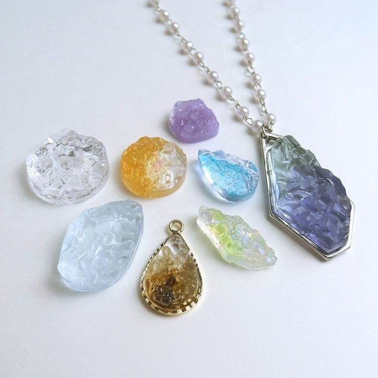 ルドが発売されました。天然石の神秘的な透明感や凹凸が表現されたパーツを作ることができます。またレジンで作ることで本物の天然石より軽くて使いやすく、自分好みのカラーで作ることができるのも魅力的です。