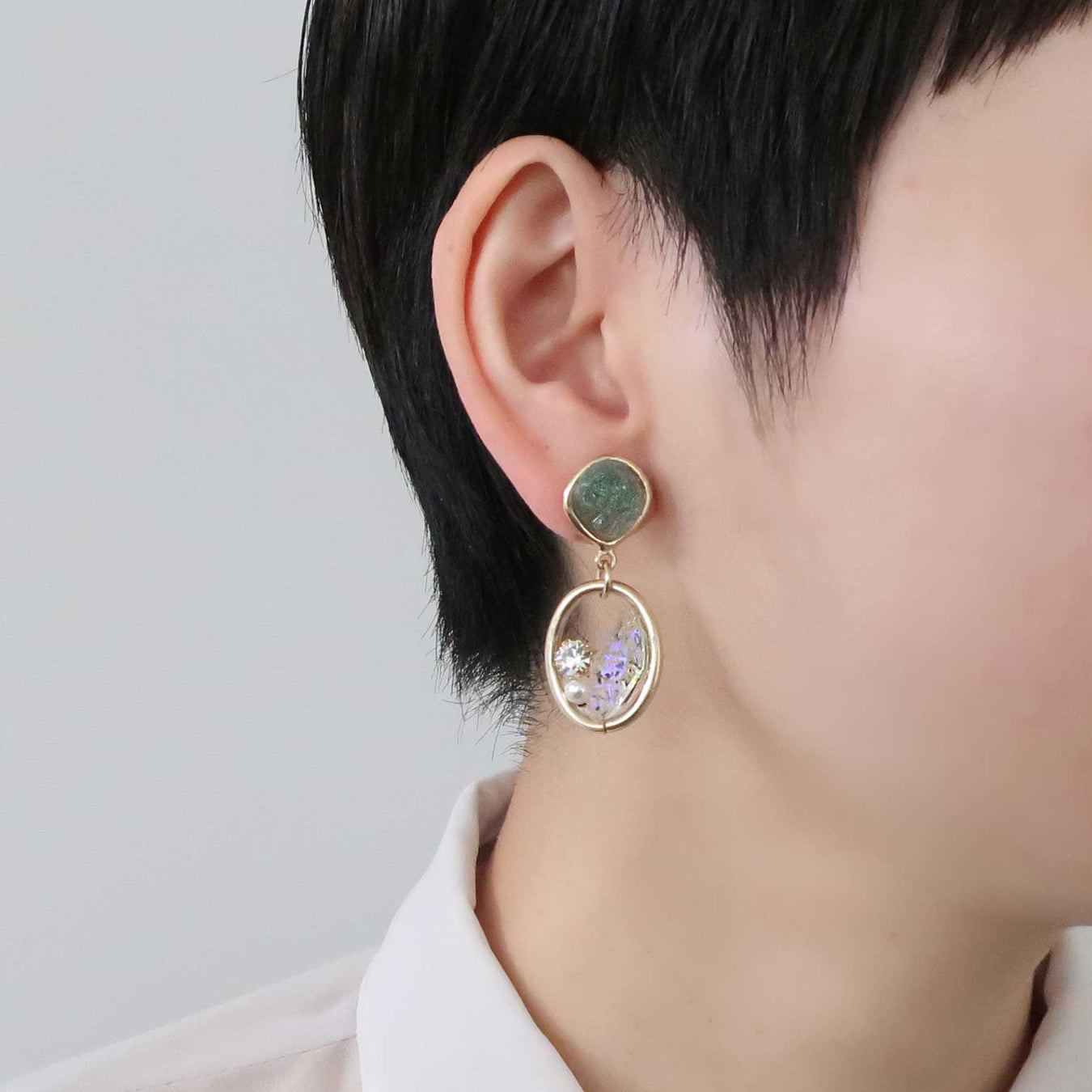 こちらは鉱石のようなフォルムのピアスです。