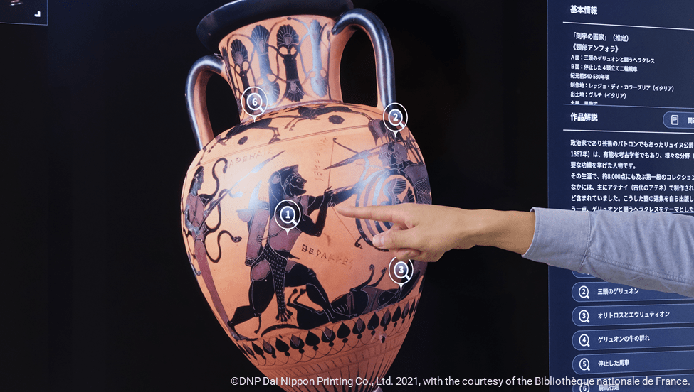 DNPは、「印刷と情報」に関する独自の強みを活かして、MLA(Museum:美術館・博物館/Library:図書館/Archives:文書館)が所蔵する作品や資料をデジタル化し、人々に感動を与え、作品の知識を深めるコンテンツとして提供するデジタルアーカイブ事業に取り組んでいます。その一環で開発・運用している「DNPコンテンツインタラクティブシステム みどころシリーズ」は、文化財の高精細なデジタルデータと、MLAの多様な知的情報である「みどころ」を掛け合わせたインタラクティブな鑑賞システムのラインアップです。