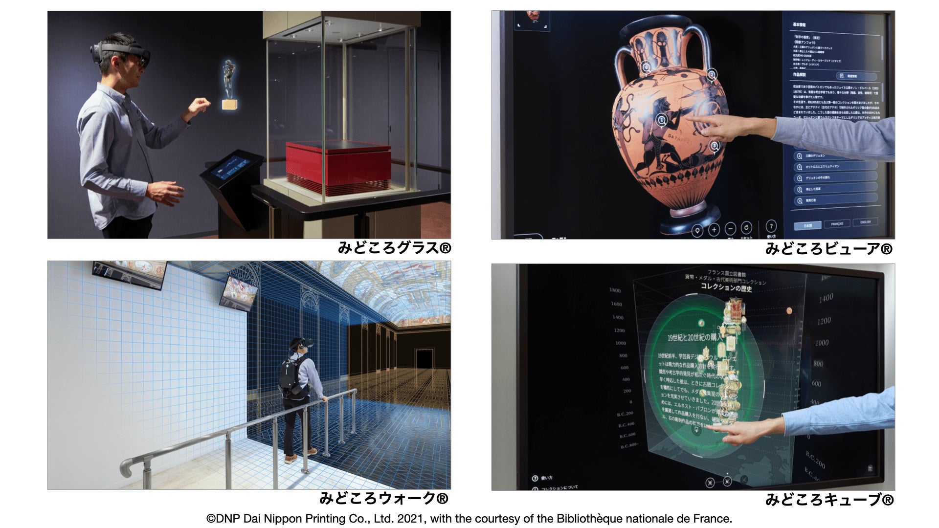 多くの人々に文化財やアート作品等への興味のきっかけを提供するほか、テーマ・関係性など多様な視点で知識を広げていきます。作品等の現物がない場所でも、仮想的に作品を手に取るような鑑賞ができるなど、“新しい文化体験”を通じて、文化財のさらなる価値の創出につなげていきます。DNPはフランス・パリのフランス国立図書館(BnF)のほか、国内外のさまざまなMLAに「みどころシリーズ」を導入しており、今後さらに対象を拡大していきます。