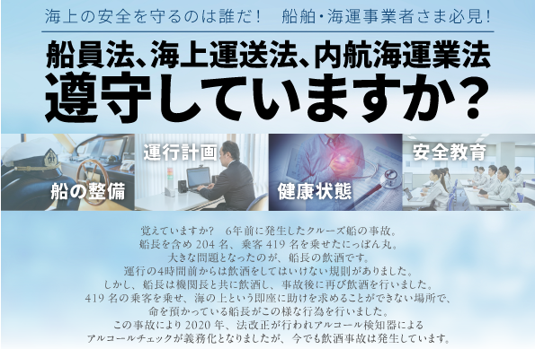 ■詳細はこちらから:海上の安全を守るのは誰だ! 船舶・海運事業者さま必見!船員法、海上運送法、内航海運業法 遵守していますか?