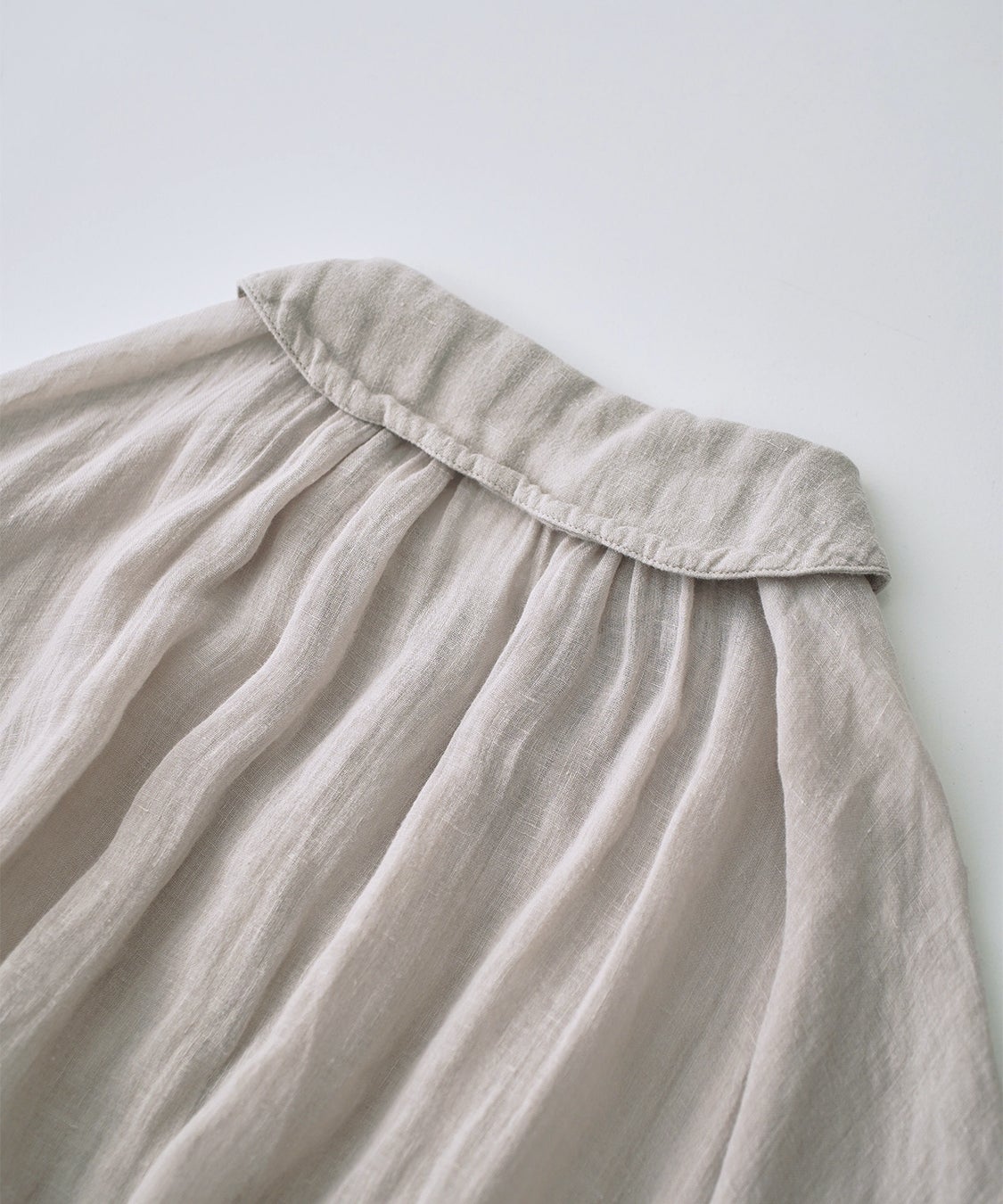 nest Robe夏の定番素材として毎年大好評のリネンガーゼ素材から新作アイテムがラインナップ。 経糸緯糸共に80番手の細番手リネンを使用し、遠州産地にて丁寧に織り上げた薄手のリネンガーゼ。