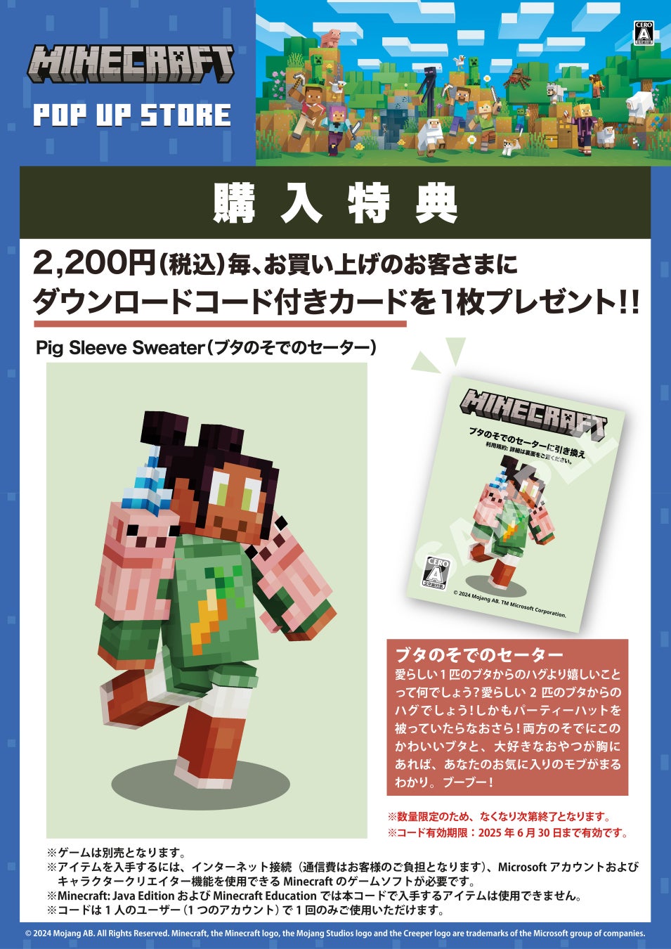 購入者特典として、税込2,200円お買い上げ毎に、ゲーム内で使えるアイテム「ブタのそでのセーター」が入手できるダウンロードコード付きカードをプレゼントします。
