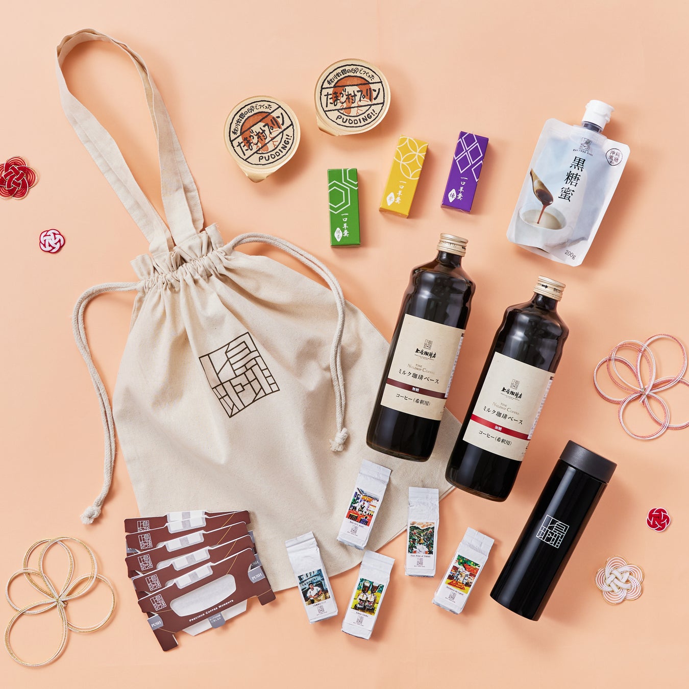 上島珈琲店 ミルク珈琲ベース(希釈)無糖 600ml 上島珈琲店 ミルク珈琲ベース(希釈)加糖 600ml 上島珈琲店の黒糖蜜<お店の黒糖ミルク珈琲に使用> ひとくち羊羹 煉 ひとくち羊羹 抹茶 ひとくち羊羹 栗 アデリー 秋川牧園 たまご村プリン 2つ 上島珈琲店 上島珈琲店ブレンド(15g/約1杯分) 上島珈琲店 Foot Print of TADAO(15g/約1杯分) 上島珈琲店 Bow-tie’s pour(15g/約1杯分) 上島珈琲店 Glass Globe(15g/約1杯分) 上島珈琲店 Kurakuen the Uphill(15g/約1杯分) 上島珈琲店 1杯コーヒーフィルター(5枚入り) <非売品> オリジナルロゴ入り真空ステンレスボトル230ml オリジナルロゴ入り巾着トート 各1点ずつ |